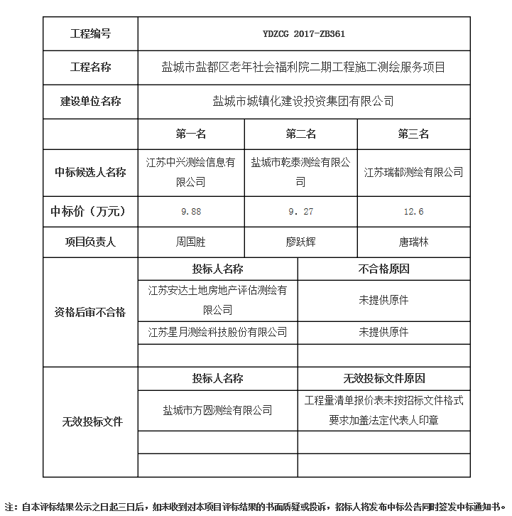 盐城市盐都区老年社会福利院二期试桩工程中标结果公示