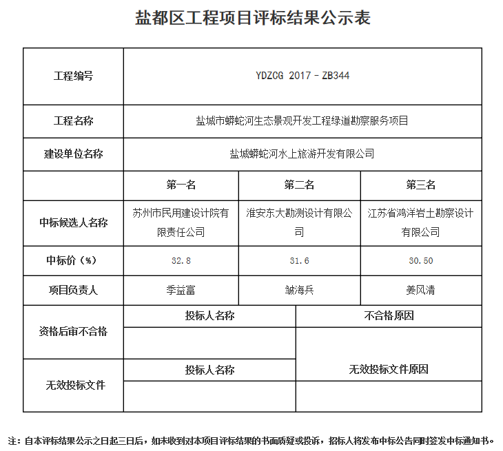 盐城市蟒蛇河生态景观开发工程绿道勘察服务项目中标结果公示
