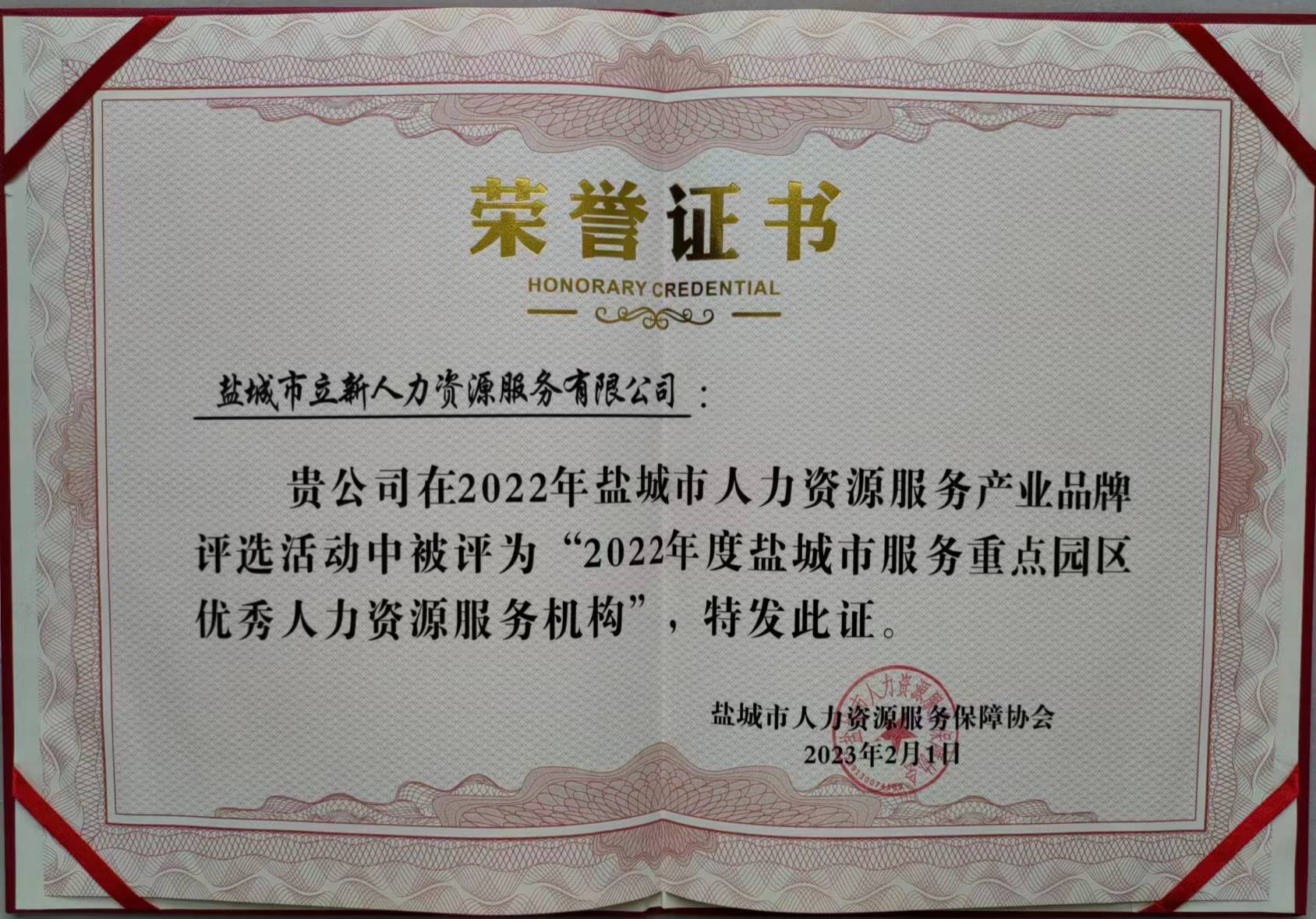 踔厉奋发 笃行不殆――立新人力荣获2022年度盐米兰官方网站重点园区优秀人力资源服务机构称号