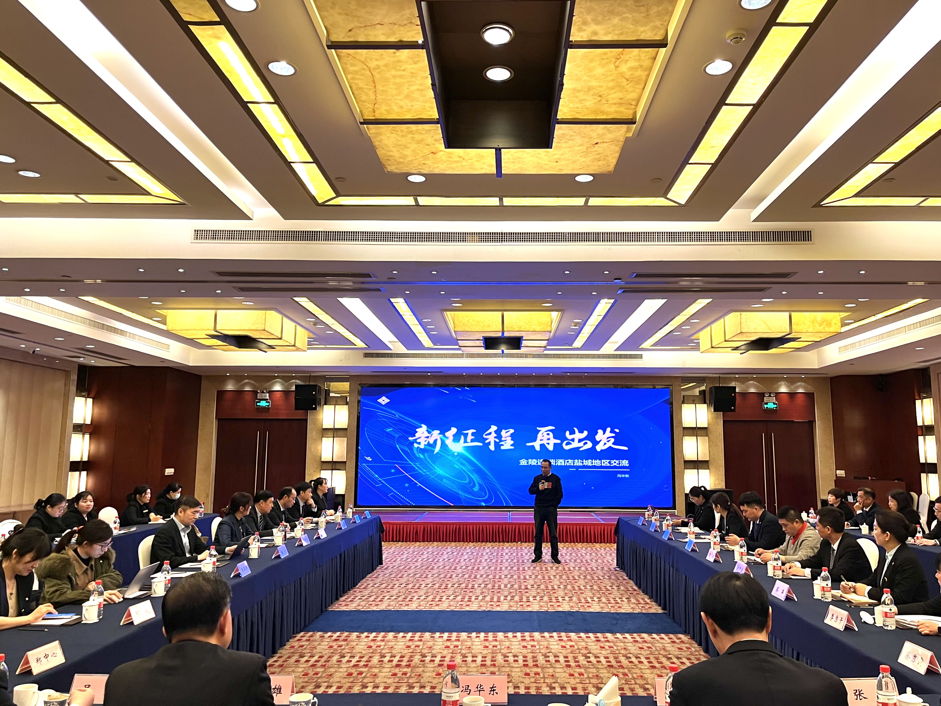 2023年3月29日下午,金陵饭店集团数字科技中心总经理冯华东博士一行在驿都金陵大酒店召开金陵连锁酒店盐城地区数字营销交流会,金陵连锁酒店盐城水城酒店、滨海金陵大酒店、阜宁金沙湖湖滨金陵大酒店、建湖悦湖金陵嘉珑酒店、盐城机场嘉珑酒店的总经理和主要职能部门负责人参加了座谈会。