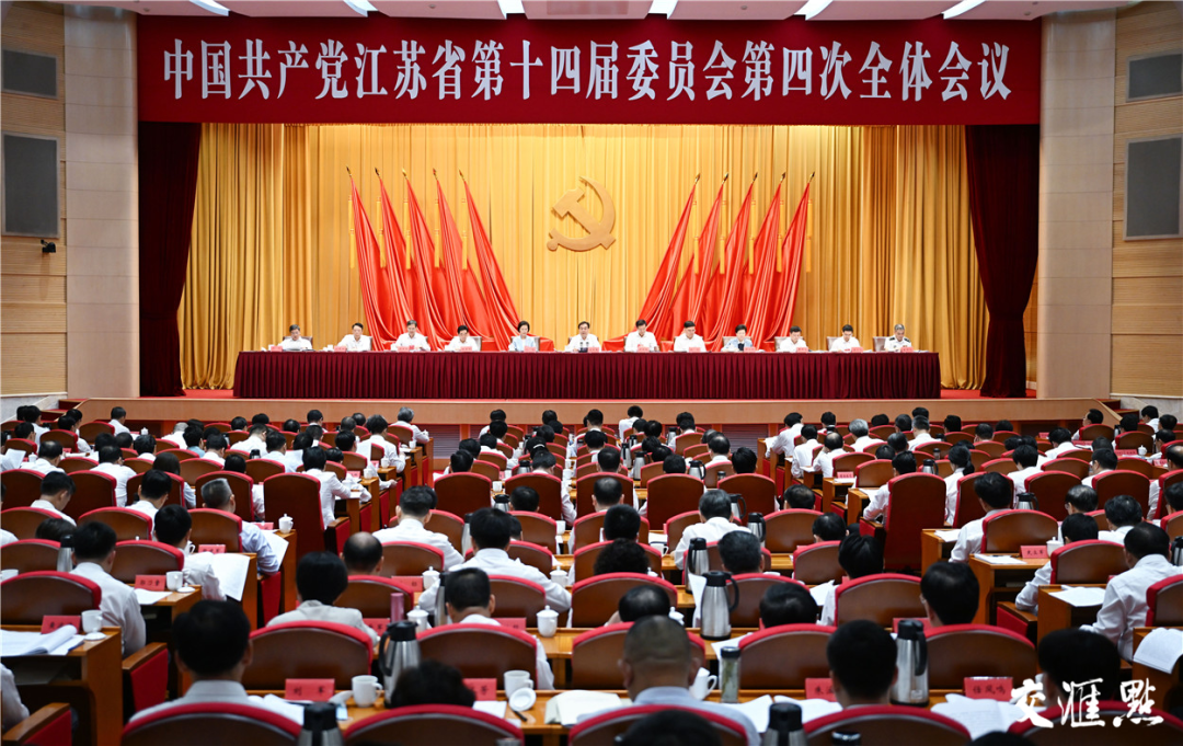 审议通过《中共江苏省委关于深入学习贯彻习近平总书记对江苏工作重要讲话精神在推进中国式现代化中走在前做示范谱写“强富美高”新江苏现代化建设新篇章的决定》《中国共产党江苏省第十四届委员会第四次全体会议决议》,审议通过关于批准王晖、唐屹峰同志辞去十四届省委委员职务的《决定》